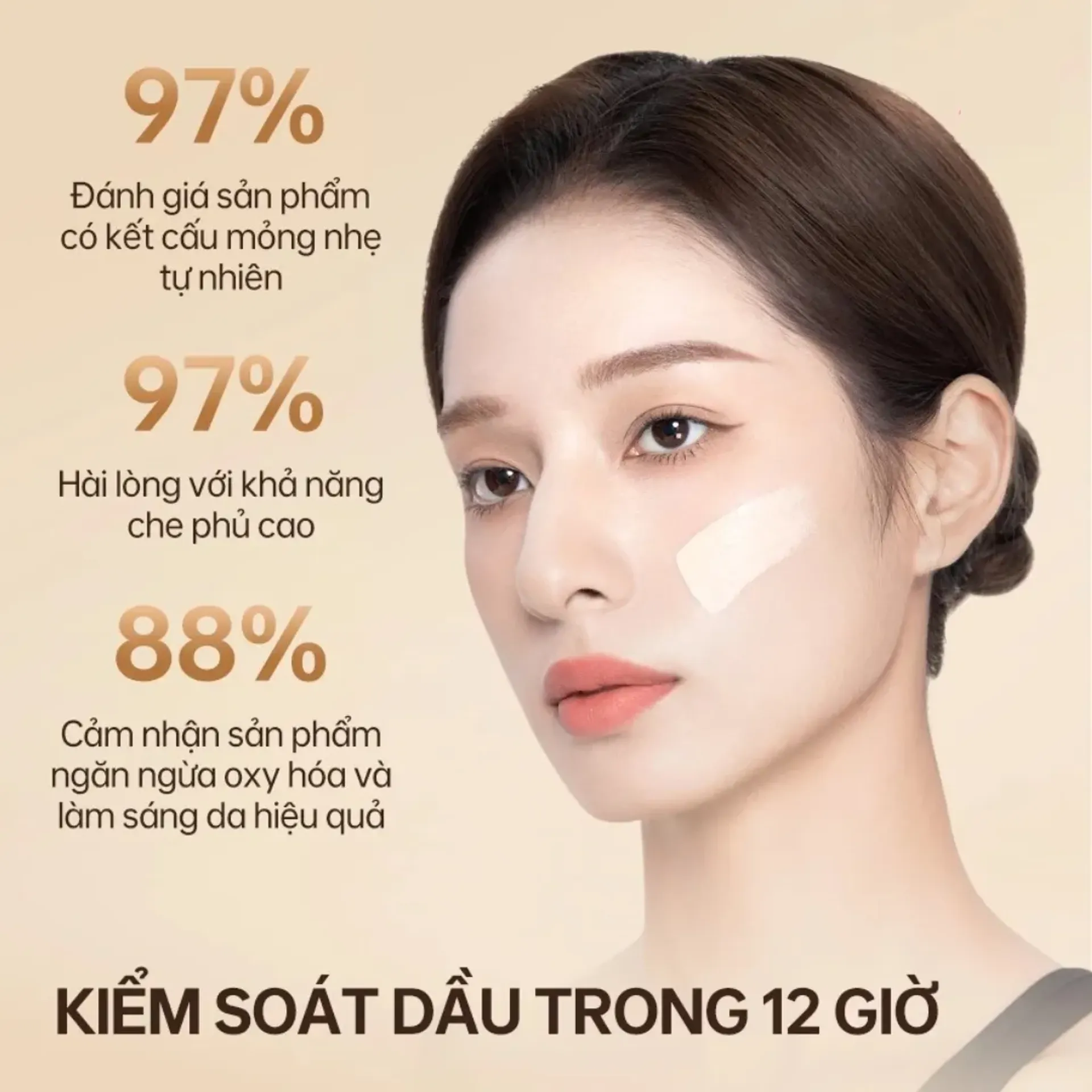 - Duy trì lớp nền bền màu, không xuống tông, không bị cakey