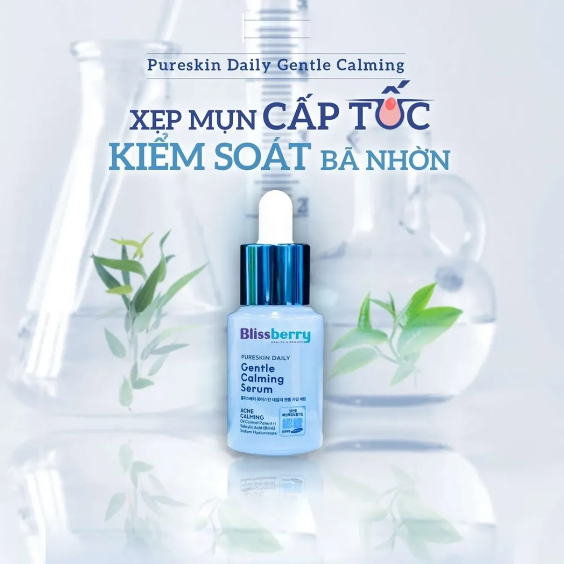 Công dụng: Blissberry PureSkin Daily Gentle Calming là dòng serum đa chức năng giúp cấp ẩm sâu, kiềm dầu hiệu quả và làm dịu làn da nhạy cảm, dễ nổi mụn. Nhờ vào công thức lành tính và công nghệ phân tách hoạt chất siêu mịn, sản phẩm giúp phục hồi hàng rào bảo vệ da, giảm sưng viêm do mụn và kiểm soát bã nhờn mà không gây bí da
