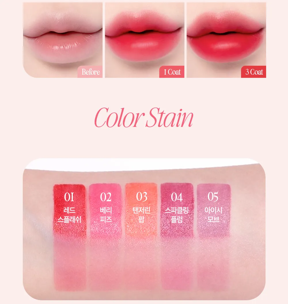 - Bền màu lâu trôi: Son tint Clio giữ màu trong nhiều giờ, mang lại màu môi tươi tắn và sống động mà không cần dặm lại thường xuyên.