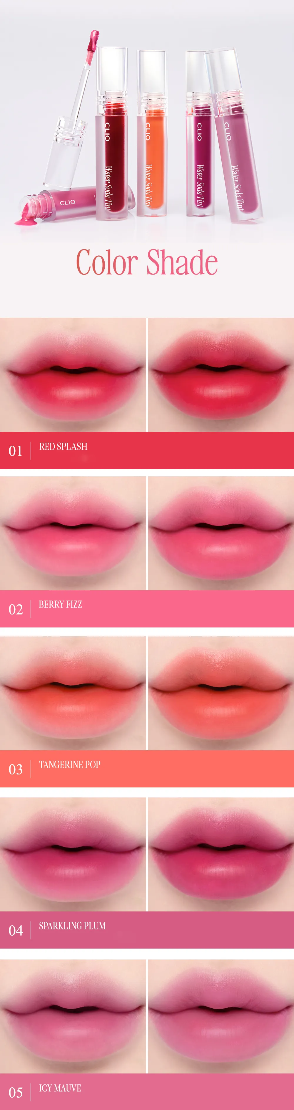 Son tint Clio Water Soda Tint là một loại son tint gốc nước tươi mát, mang lại màu sắc sống động với lớp nền nhẹ, không gây khô môi. Công thức son môi được thiết kế để mang lại một lớp tint tự nhiên, tươi tắn cho đôi môi đồng thời giữ ẩm, khiến nó trở nên hoàn hảo để sử dụng lâu dài nhưng vẫn thoải mái.