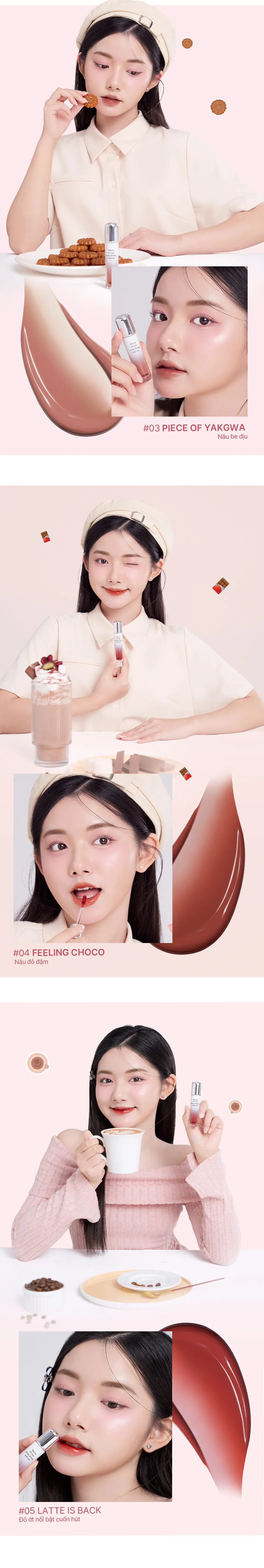 04 Feeling Choco – Nâu đỏ đậm quyến rũ, dành cho phong cách trang điểm nổi bật.