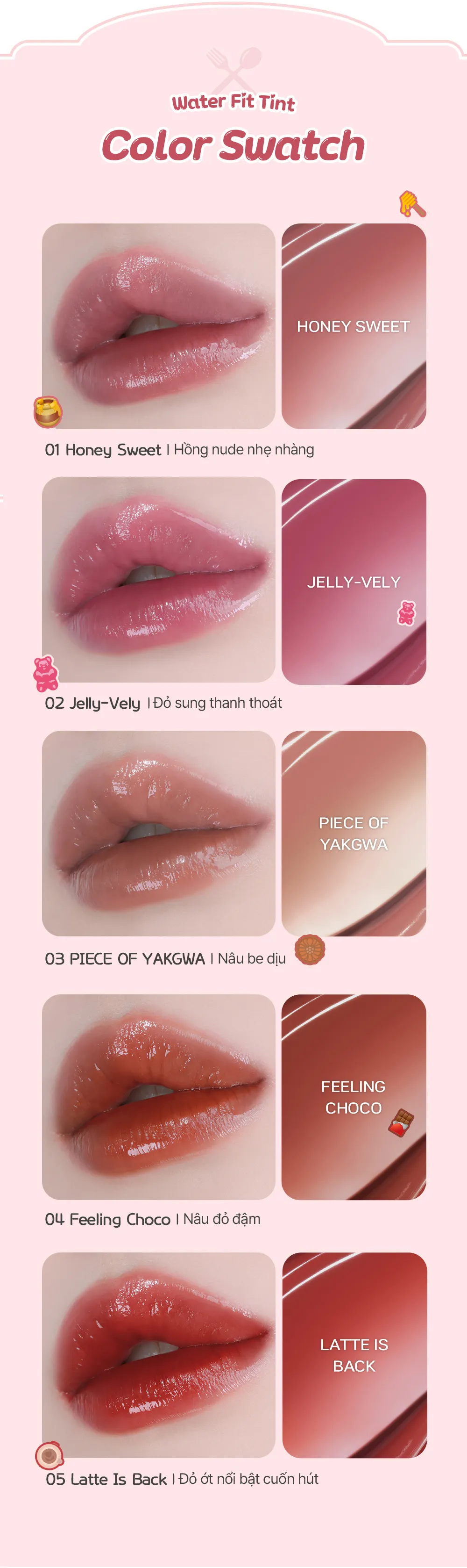 02 Jelly-Vely – Đỏ sung nhẹ nhàng, tạo cảm giác tươi mới, tự nhiên.