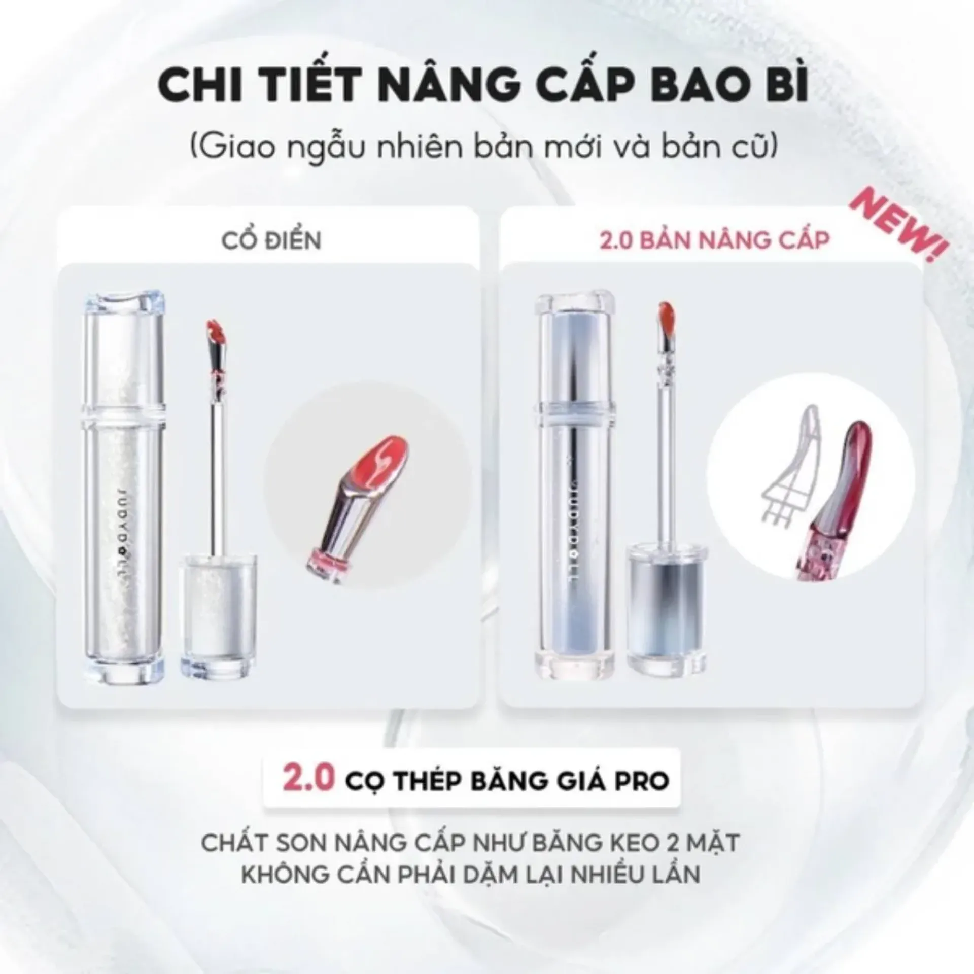 Son tint Judydoll Watery Lip Gloss phiên bản mới với thiết kế cọ thép băng giá 2.0 pro. Chất son nâng cấp như băng keo 2 mặt, không cần dặm lại son nhiều lần trong ngày.