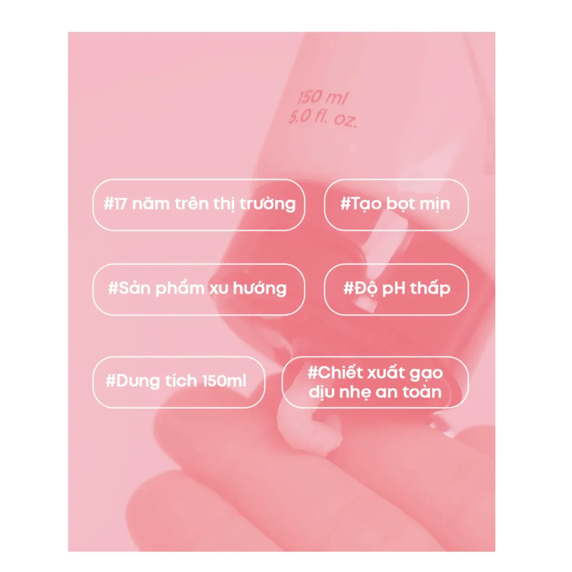 Công dụng chính: Sữa rửa mặt dịu nhẹ thích hợp với tất cả các làn da. Với dạng bọt kem nhỏ mịn, sữa rửa mặt có khả năng làm sạch sâu trong lỗ chân lông, làm sạch bụi bẩn ô nhiễm trên bề mặt da. Độ ẩm được lưu giữ tối ưu sau khi rửa, giúp làn da sạch sáng và khỏe mạnh.