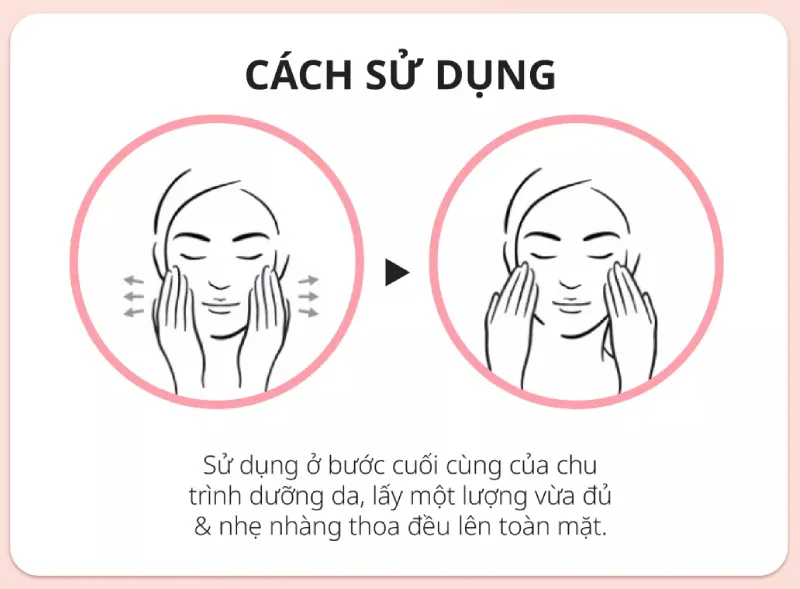 - Dùng trên da sạch, ở bước cuối cùng khi dưỡng da, vào ban ngày trước khi ra ngoài tầm 10ph.