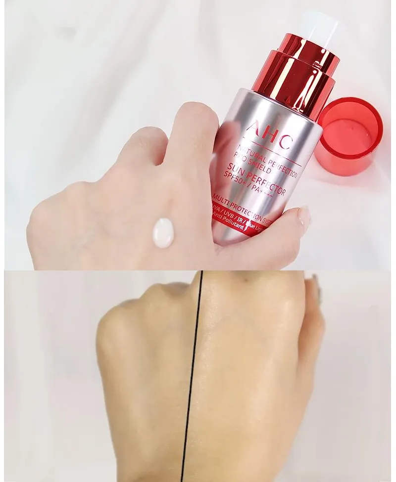 Sản phẩm chống nắng AHC Natural Perfection Pro Shield Sun Perfector vô cùng đa năng, mạnh mẽ trong việc chống nắng bảo vệ da, đồng thời cấp ẩm duy trì độ ẩm cho da trong suốt quá trình sử dụng. Mặt khác, bạn có thể dùng tinh chất chống nắng AHC như một lớp kem lót mỏng nhẹ có khả năng nâng tông nhẹ nhàng, đồng thời tạo thành lớp màng bảo vệ da ngừa bụi bẩn ô nhiễm tích tụ.