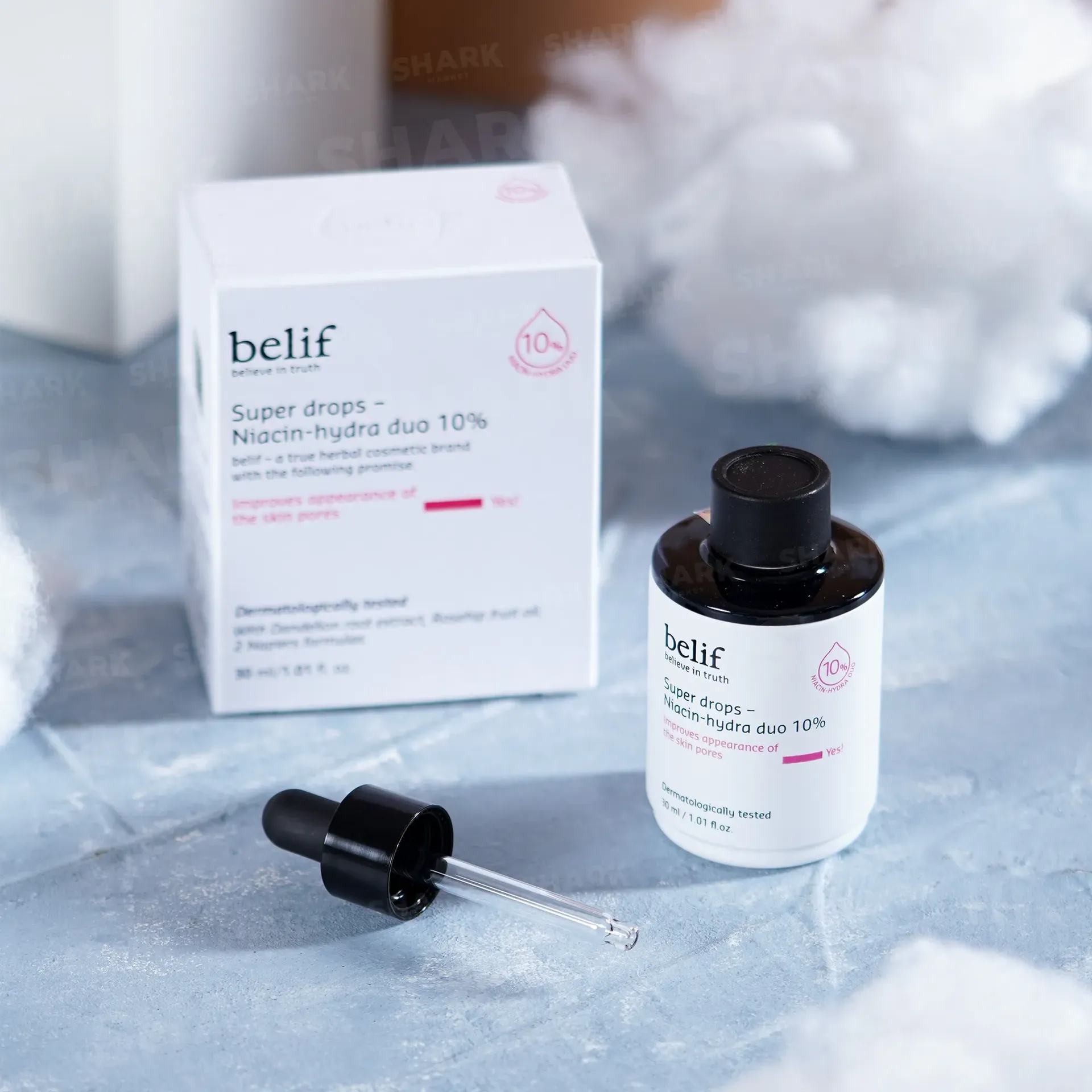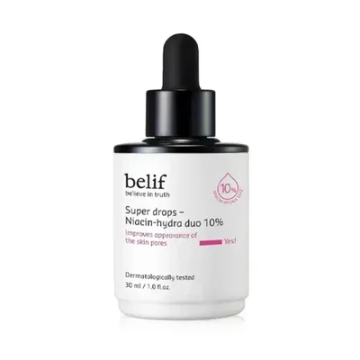 Dưỡng da chuyên nghiệp như spa ngay tại nhà? Tại sao không? Tinh chất Belif super drops chứa đến 10% niacin-hydra cô đặc giúp cấp ẩm chuyên sâu, chăm sóc lỗ chân lông mang lại làn da săn chắc, giảm thiểu khô ráp. Bên cạnh đó sản phẩm còn chiết xuất từ thiên nhiên gồm rễ cây bồ công anh, dầu tầm xuân có tác dụng làm sáng, cải thiện da xỉn màu, xóa tan đốm nâu, thâm cho mụn để lại.