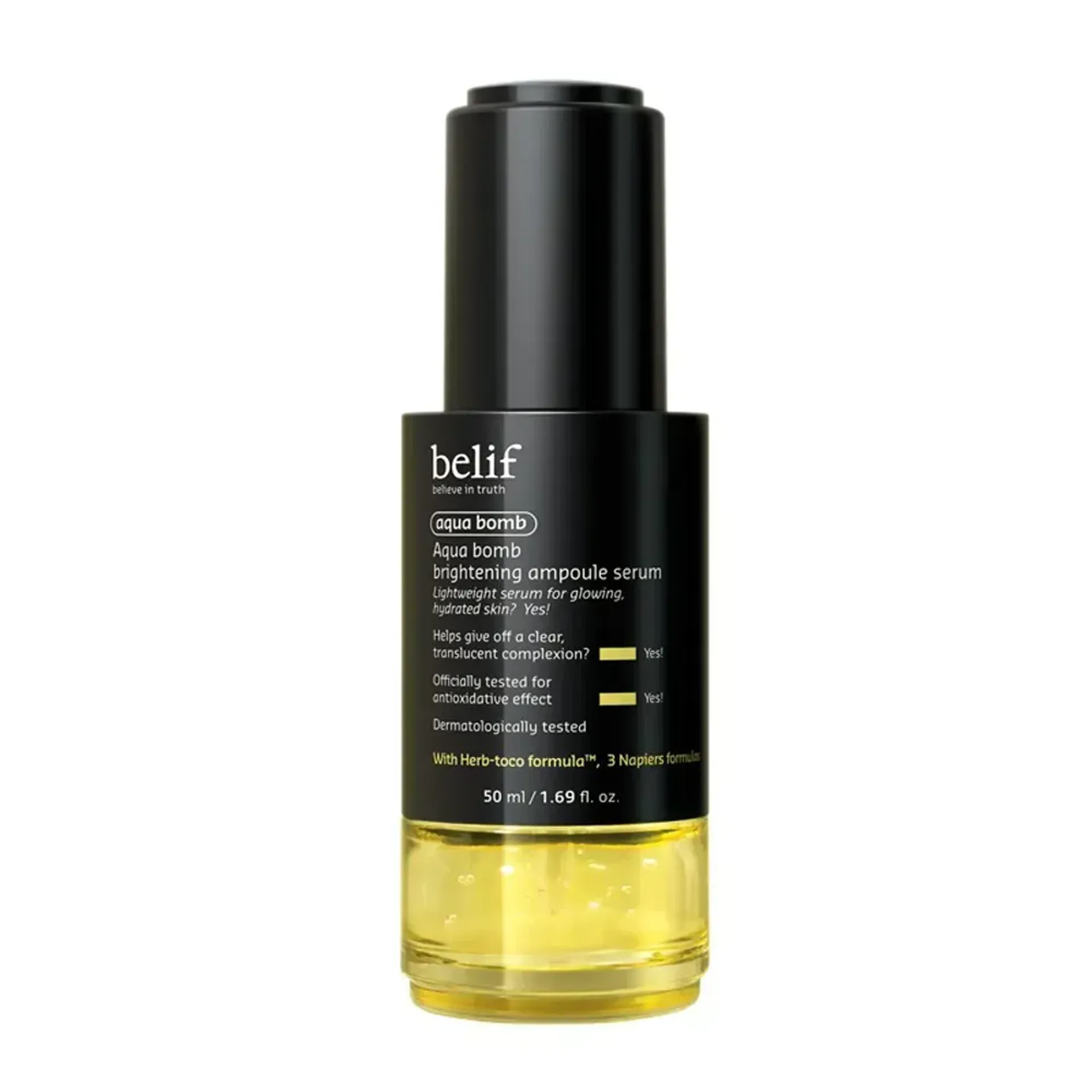 Tinh chất dưỡng trắng da làm chậm sự oxy hóa BELIF Aqua Bomb Brightening Ampoule Serum chứa công thức dưỡng ẩm với thảo mộc truyền thống 160 năm tuổi của Aqua Bomb giúp cấp ẩm chuyên sâu, mang lại làn da căng mịn tràn đầy sức sống.