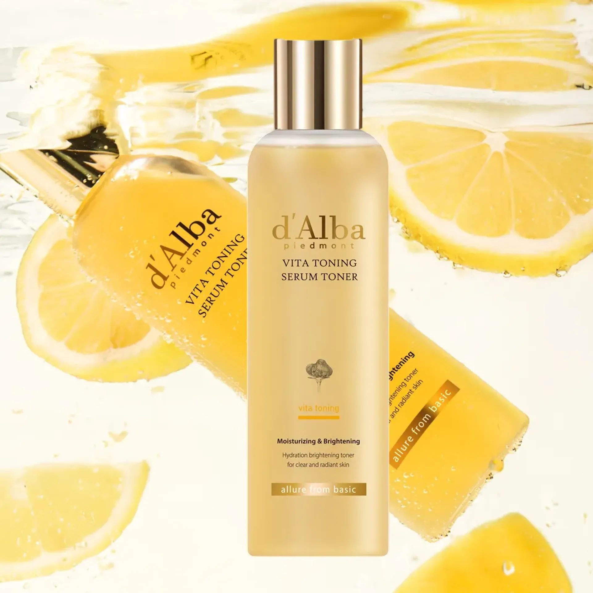 - Sau bước rửa mặt, cho một lượng vừa đủ D'Alba Vita Toning Serum Toner ra lòng bàn tay hoặc bông tẩy trang, nhẹ nhàng thoa đều lên mặt và cổ.