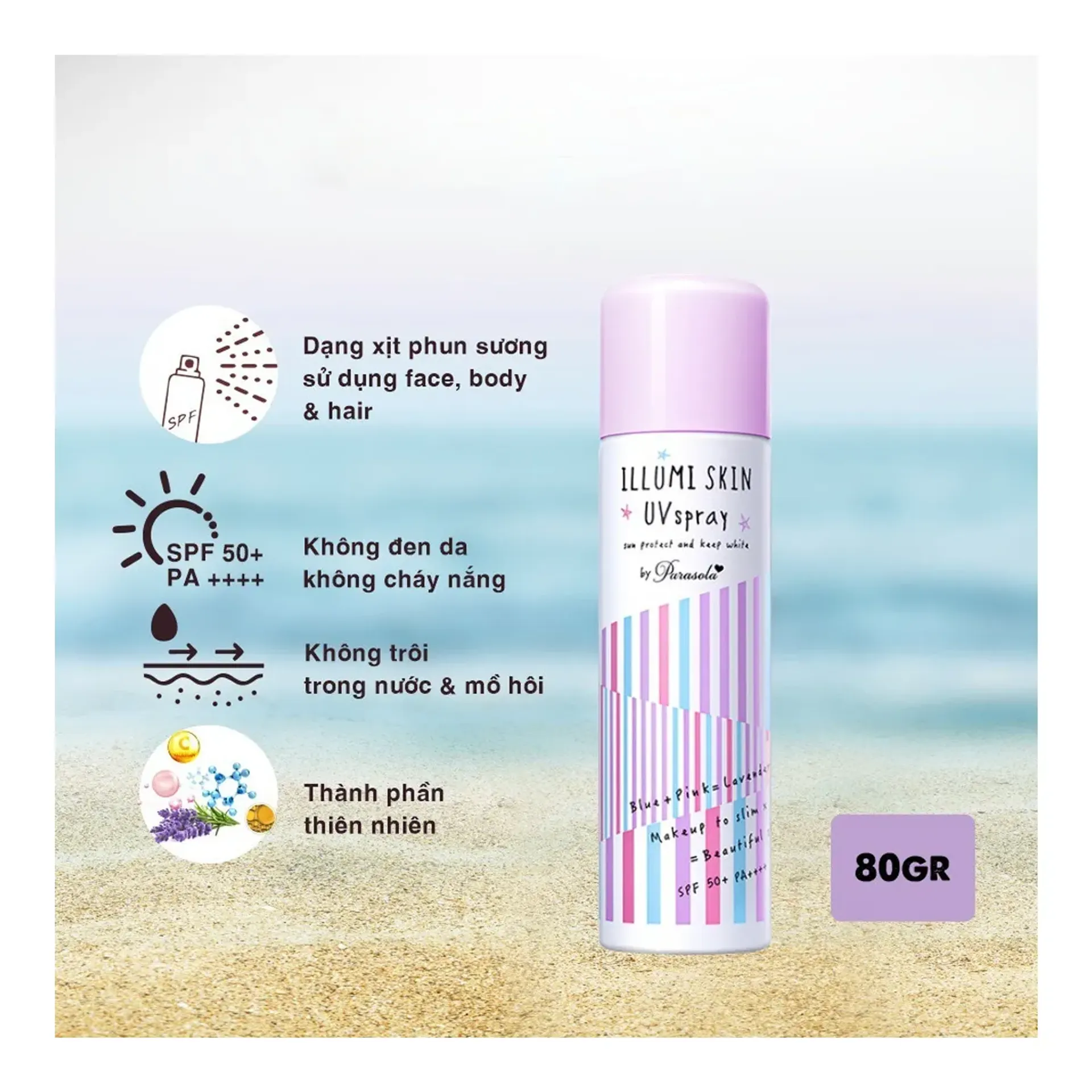 Mang đến trải nghiệm chống nắng thế hệ mới, Naris Parasola Illumi Skin UV Spray không chỉ tạo lớp màng chắn hiệu quả trước tác động của tia cực tím, mà còn giúp làn da trở nên đều màu, rạng rỡ và mềm mại chỉ sau vài giây sử dụng.